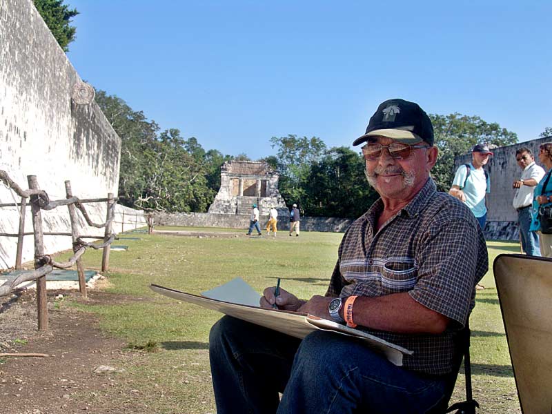 ein englischer Maler, den wir trafen, der seit 3 Jahrzehnten den Verfall der Ruinen im Bild festhält.. |
