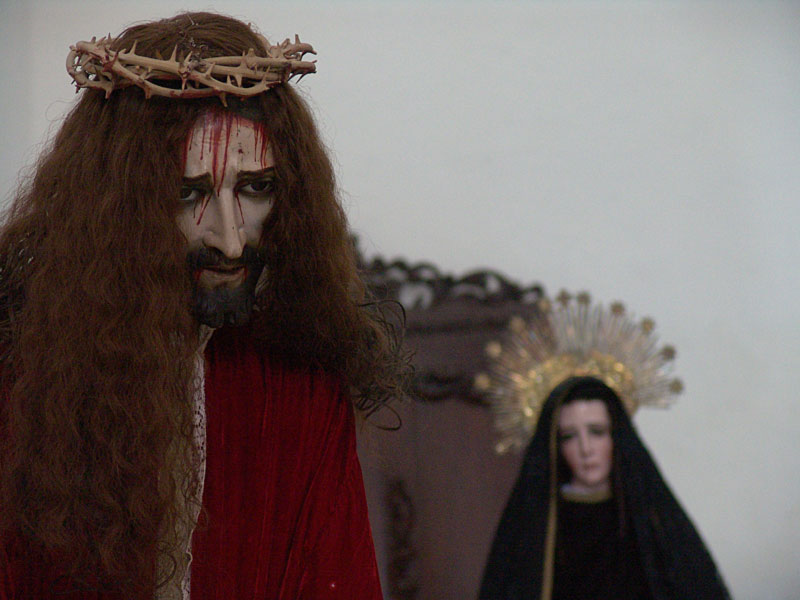 angsteinflößende Jesusdarstellungen und viele Heilige Figuren. |
