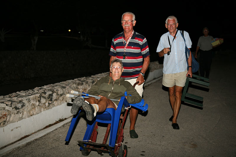und nach dem Festmahl wird die bänderledierte Hedwig mit einem improvisierten Spezialtaxi ins Wohnmobil verfrachtet... |