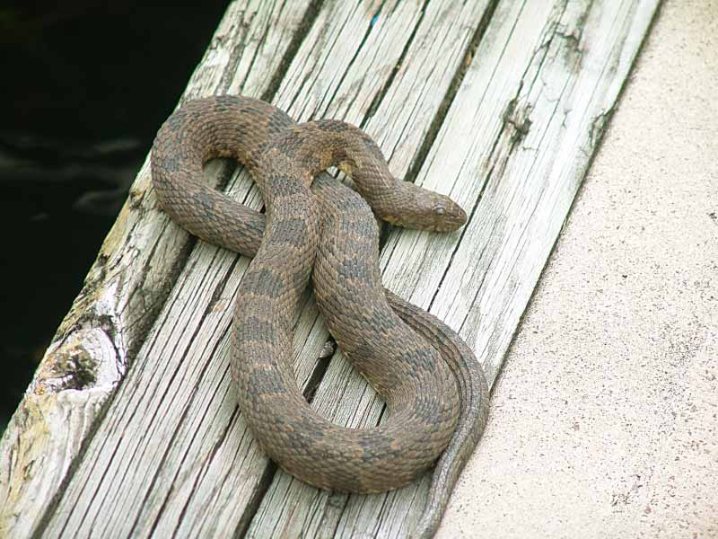 Diese Schlange hat sich ausgerechnet den Bootsanlegeplatz für die Häutung ausgesucht... |