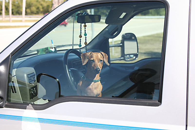 ...während Chica sich wundert, weshalb sie schon wieder im Auto warten muss... |