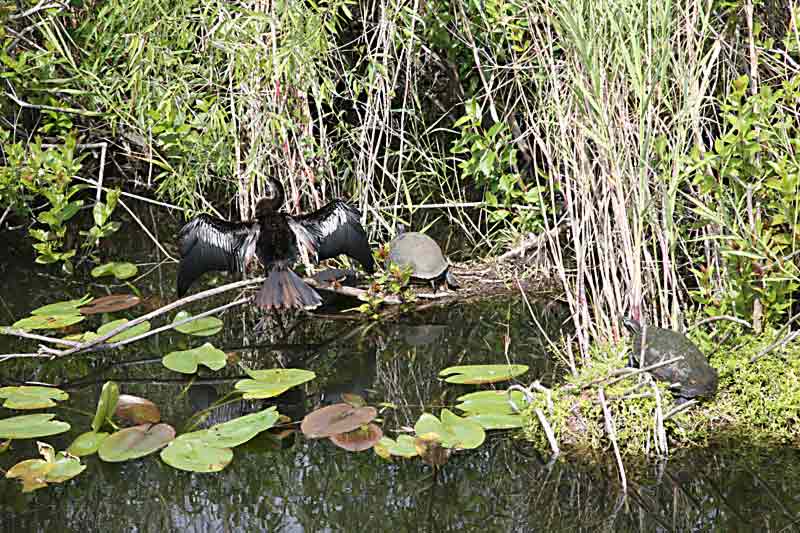Wasserschildkröten "verfolgen" Kormoran.. |