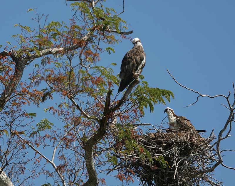Adlerhorst, fast flügge Jungvögel, wir erleben, wie sie den ersten Flug wagen.. |