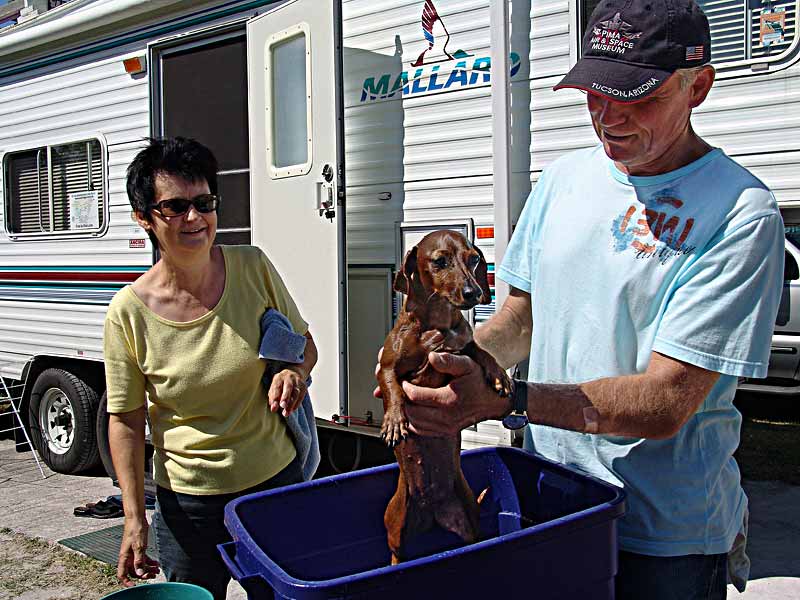 Rita und Fred baden Chica, die ziemlich erstaunt "aus der Wäsche" schaut... |