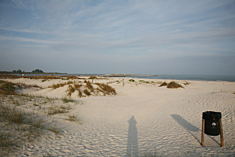 Strand am Camp, an diesem Tag wurde die lila Fahne aufgestellt was soviel bedeutet, dass Haie in der Nähe gesichtet wurden! |